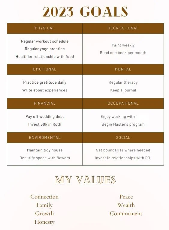 I made this template that breaks down eight areas of my life that I wanted to improve. Feel free to print and fill it out yourself, if it serves you.
